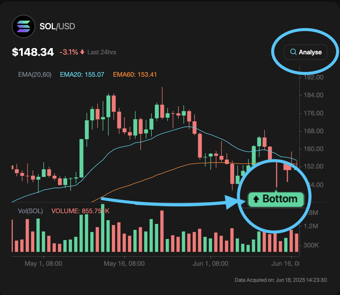 Sử dụng những nhận định rõ ràng này để nhanh chóng quyết định xem liệu hiện tại có phải là thời điểm thích hợp để mua, bán hay chờ đợi hay không.Pivot Alertgiúp bạn tránh những sai lầm tốn kém và giao dịch tự tin vào đúng thời điểm. Ngoài ra, nhấp vào "Phân tích" nếu bạn cần thêm thông tin về token mà bạn đang quan tâm.