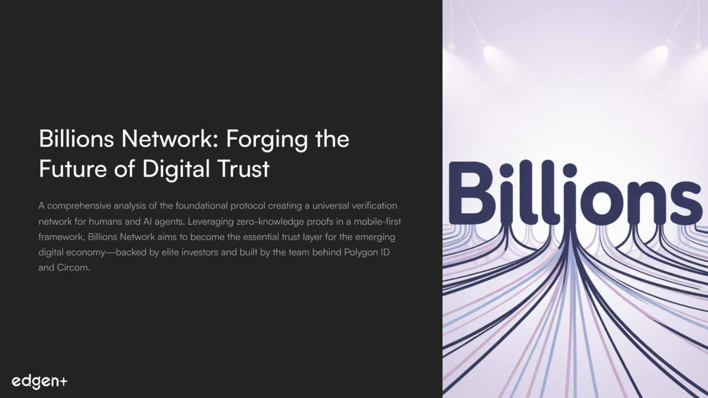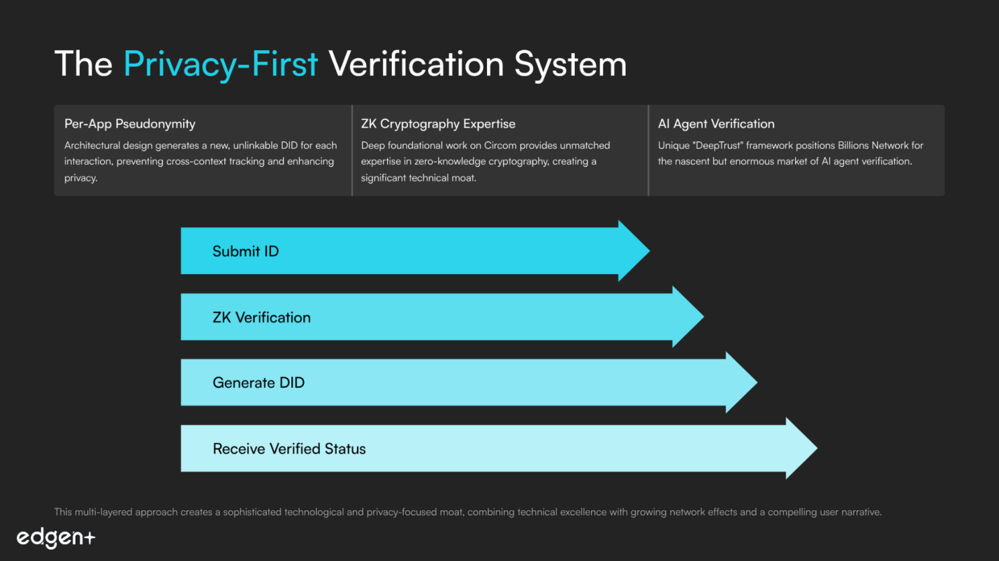- AI Agent Verification: Unique scope including AI agent verification, positioning Billions Network for a nascent but enormous future market with its "DeepTrust" framework.