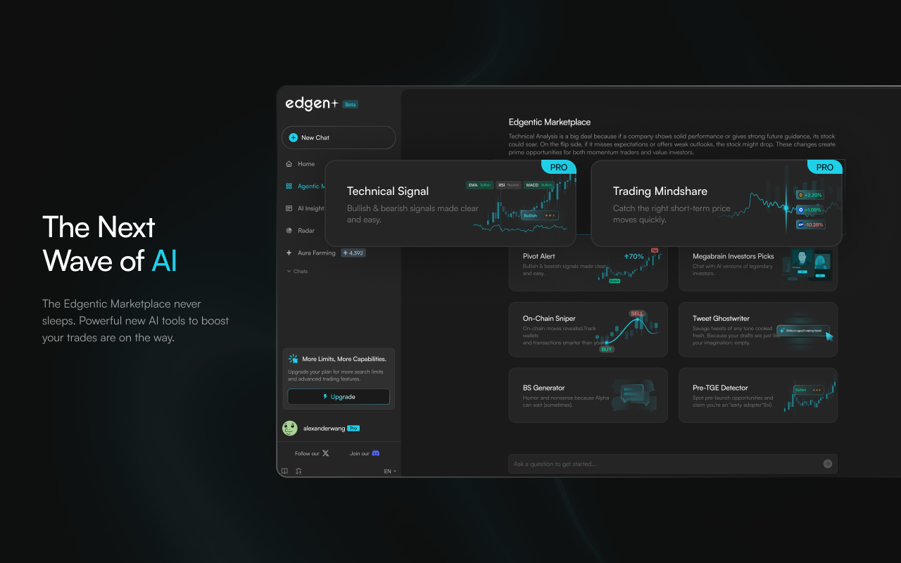 - Edgentic Marketplace: Pivot Alert, Technical Signals, Trading Mindshare, and more.