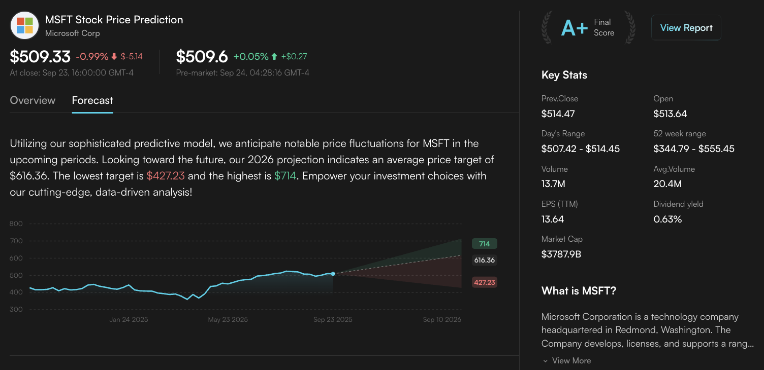- Think forward: Use the Forecast page’s price ranges as a springboard for your own thesis. Do you agree with the projection? Why or why not