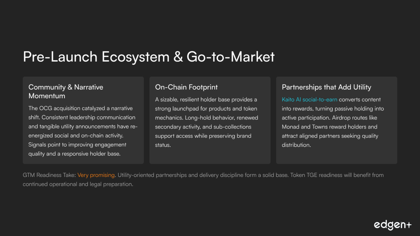 GTM Readiness Take: Very promising. Utility-oriented partnerships and delivery discipline form a solid base. Token TGE readiness will benefit from continued operational and legal preparation.