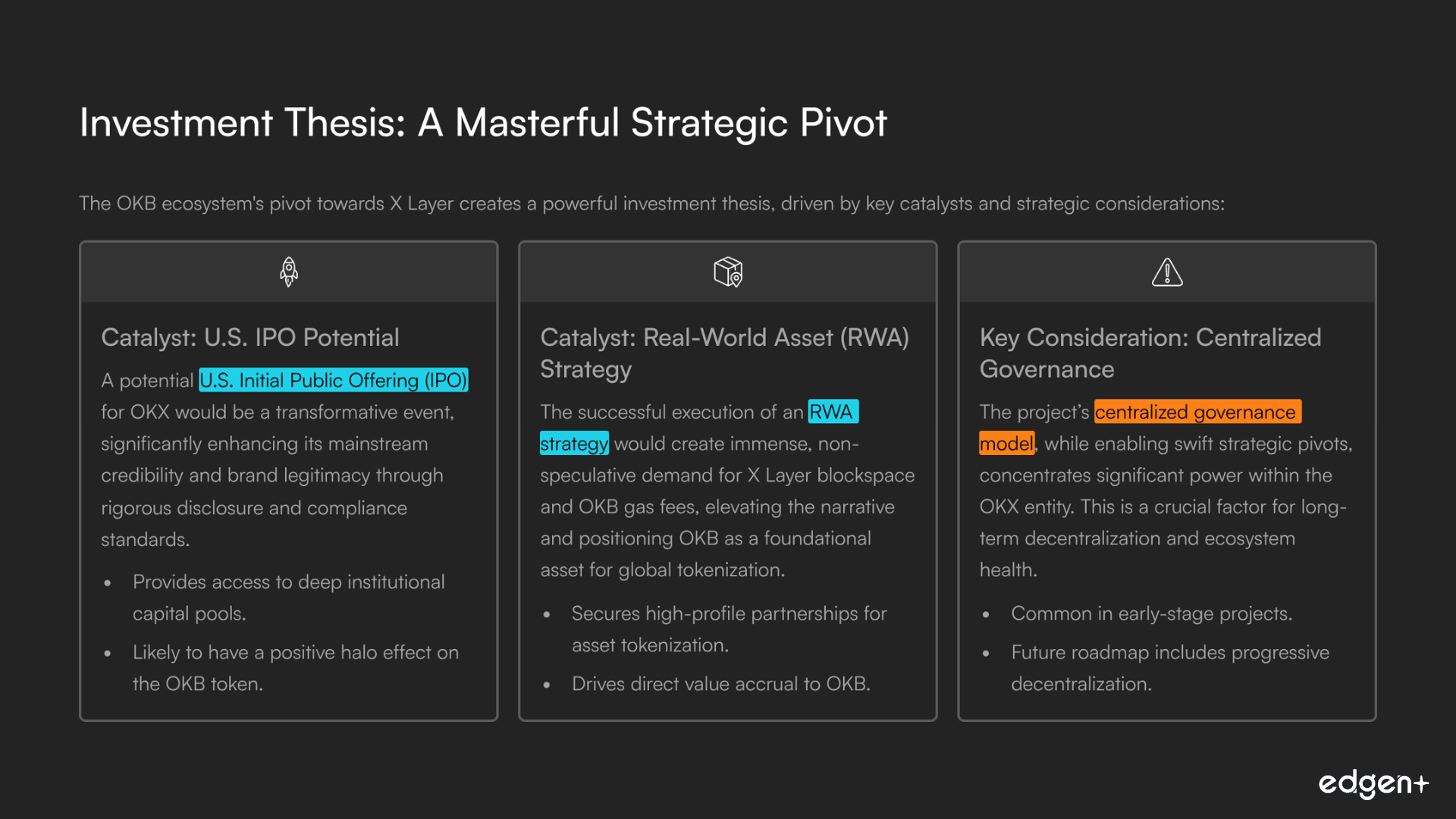 - The strategic move to make OKB the sole gas token for the new X Layer creates a powerful and direct value accrual mechanism, ensuring that all future on-chain activity drives demand for OKB.