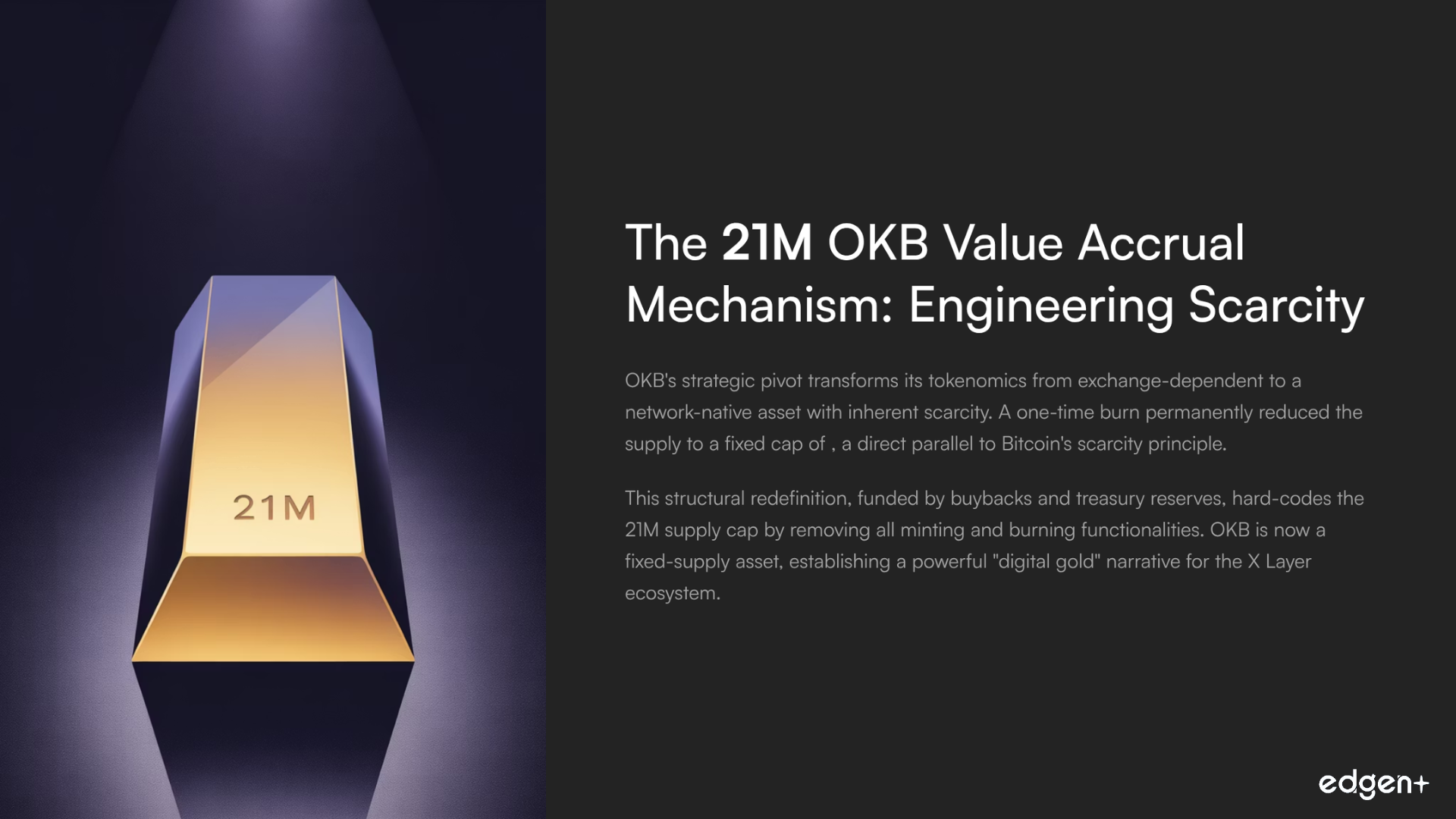 - OKB has undergone a radical strategic transformation, pivoting from a conventional exchange utility token to a scarce, network-native asset with a fixed supply of 21 million tokens, mirroring Bitcoin's iconic scarcity model.