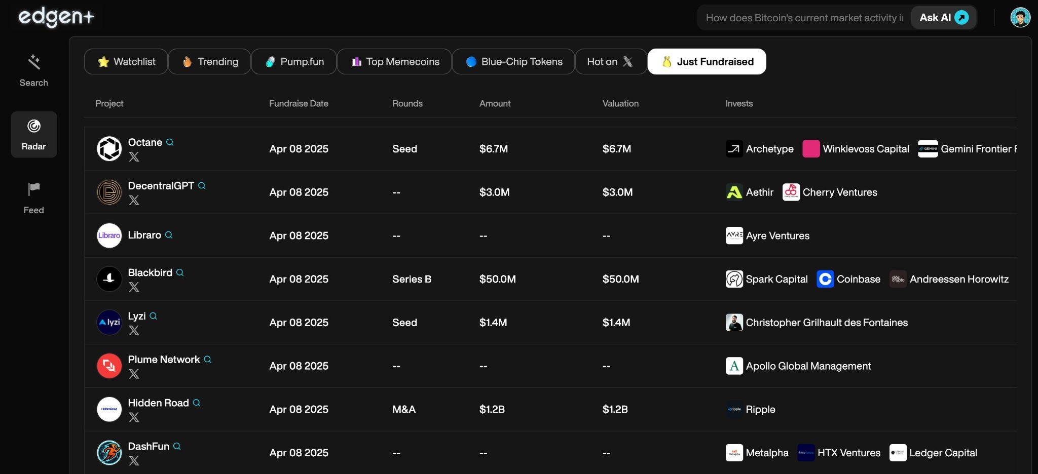 エッジンは、私が狂いそうになるのを防ぐために本当に必要なものでした。私は、暗号通貨のあらゆる領域、コインテレグラム、スマートウォレット、ブロックチェーン上のシグナル、開発者活動、最近のベンチャーキャピタルから即座に集約された集団知を収集できるツールを望んでいました。資金調達を行い、それを私に明確かつ迅速に届けます。
